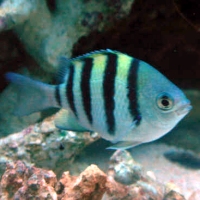 Sergeant Major Damselfish Alternative Name(s): Scientific Name(s): Abudefduf saxatilis Category: Marine Fish Difficulty: Maximum Size: 15cms Minimum Tank Volume: 200 litres Minimum Tank Size: 44 Gallons Water Temperature Range: 20-28°C