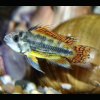 Cockatoo Dwarf Cichlid Alternative Name(s): Crested Dwarf Cichlid Scientific Name(s): Apistogramma cacatuoides Category: Cichlid Difficulty: Maximum Size: 9cms Minimum Tank Volume: 60 litres Minimum Tank Size: 24" x 15" x 12" Water Temperature Range: 24-28°C Water pH Range: 6.0-7.0 Water Hardness Range: 4-10 dGH