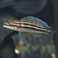 Julidochromis dickfeldi Alternative Name(s): Brown Julie Scientific Name(s): Julidochromis dickfeldi Category: Cichlid Difficulty: Maximum Size: 8cms Minimum Tank Volume: 70 litres Minimum Tank Size: 30" x 12" x 12" Water Temperature Range: 24-27°C Water pH Range: 8.0-9.2 Water Hardness Range: 10-25 dGH