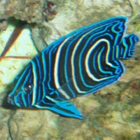 Koran Angelfish Alternative Name(s): Semicircular or Halfcircled Angelfish Scientific Name(s): Pomocanthus semicirculatus Category: Marine Fish Difficulty: Maximum Size: 40cms Minimum Tank Volume: 500 litres Minimum Tank Size: 110 Gallons Water Temperature Range: 24-27°C