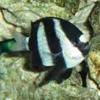 Humbug Alternative Name(s): Three Stripe Damselfish Scientific Name(s): Dascyllus aruanus Category: Marine Fish Difficulty: Maximum Size: 8cms Minimum Tank Volume: 110 litres Minimum Tank Size: 25 Gallon Water Temperature Range: 24-27°C
