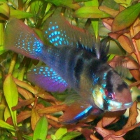 German Blue Ram Alternative Name(s): Butterfly Cichlid, GBR Scientific Name(s): Mikrogeophagus ramirezi. Category: Cichlid Difficulty: Maximum Size: 9cms Minimum Tank Volume: 75 litres Minimum Tank Size: 24" x 15" x 12" Water Temperature Range: 26-30°C Water pH Range: 5.0-6.0 Water Hardness Range: 2-10 dGH