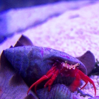 Scarlet Reef Hermit Crab Alternative Name(s): Red Reef Hermit Crab / Red Leg Hermit Crab Scientific Name(s): Paguristes cadenati Category: Marine Invertebrate Difficulty: Maximum Size: 5cms Minimum Tank Volume: 75 litres Minimum Tank Size: n/a Water Temperature Range: 22-27°C