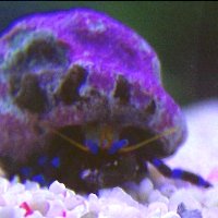 Electric Blue Hermit Crab Alternative Name(s): Blue Knuckle Hermit Crab / Marshall Island Hermit Crab Scientific Name(s): Calcinus elegans Category: Marine Invertebrate Difficulty: Maximum Size: 5cms Minimum Tank Volume: 75 litres Minimum Tank Size: n/a Water Temperature Range: 24-29°C