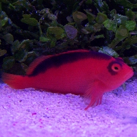 Flame Hawkfish Alternative Name(s): Fire Hawk / Brilliant Hawkfish / Scarlet Hawkfish Scientific Name(s): Neocirrhitus armatus Category: Marine Fish Difficulty: Maximum Size: 10cms Minimum Tank Volume: 110 litres Minimum Tank Size: 25 Gallons Water Temperature Range: 22-26°C